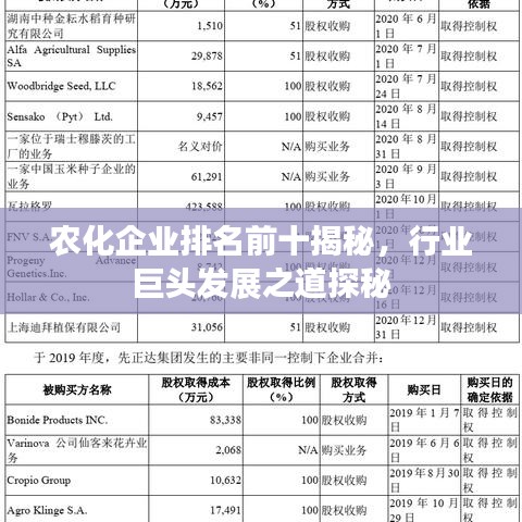 随着农业科技的不断进步,农化企业在农业生产中发挥着越来越重要的作用,本文将为您揭晓农化企业排名前十名,探究这些行业巨头的发展之路。