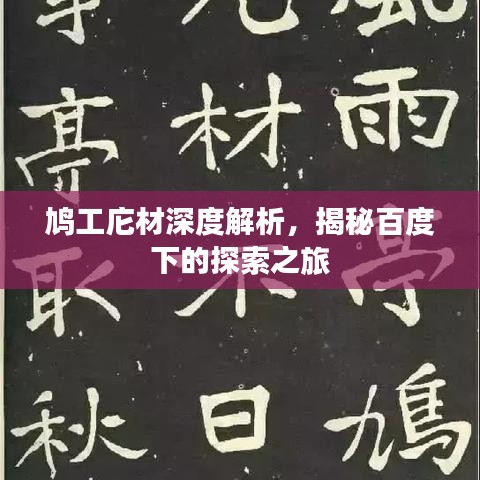 便是关于“鸠工庀材”的深入探讨,在这个信息爆炸的时代,百度为我们提供了无尽的知识宝库,借助百度,我们可以更深入地了解、探索各种新鲜词汇、热门话题,让我们继续借助这个强大的工具,探索更多未知领域,丰富我们的知识体系。