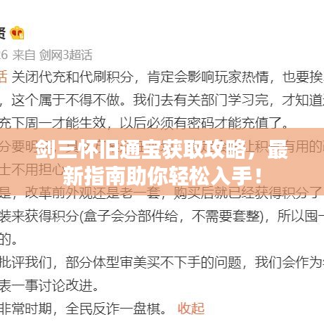 尊敬的剑三玩家们,今天我们将一起回顾那些令人怀念的剑三时光,同时分享一些关于通宝获取的最新攻略,在这个怀旧与更新的交织时刻,让我们共同探索如何在游戏中更有效地获取通宝,助力我们在剑三世界中更畅快地游玩。