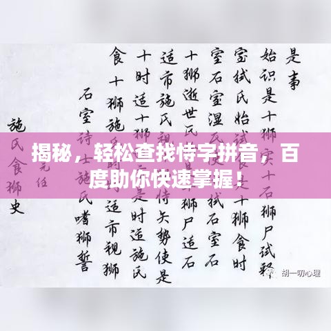 在信息化时代,我们经常需要查找生僻字的读音和含义,本文将为您揭秘如何轻松使用百度搜索工具“百度一下”来查询汉字“恃”的拼音,让您在浩瀚的字海中畅游,轻松掌握每一个字的读音!