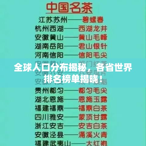 随着全球人口的不断增长和迁徙,各国的人口数量也在不断变化,本文将探讨全球各省的人口排名,揭示世界人口分布的秘密。