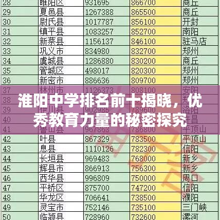 作为一名专注于教育领域的博客站长,今天我将为大家带来一篇关于淮阳中学排名前十名的文章,随着教育竞争的日益激烈,淮阳中学以其卓越的教学质量、师资力量和学生综合素质培养等方面的优势,逐渐在各地崭露头角,本文将为大家揭示淮阳中学排名前十名的秘密,让我们一起了解这些优秀教育力量的内涵。