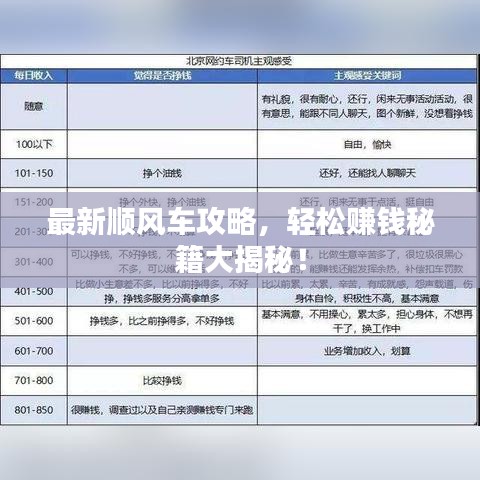 在当今社会,顺风车已经成为人们出行的一种便捷方式,不仅方便了乘客,也为司机带来了额外的收入机会,本文将为你带来最新的顺风车攻略,教你如何通过顺风车赚钱,让你的空闲时间变得更有价值。