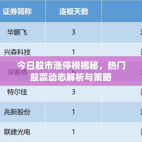 随着股市的日益活跃,投资者对于最新涨停排行榜的关注也越来越高,本文将为您带来今日涨停排行榜的最新动态,分析热门股票的表现,并探讨其背后的原因。