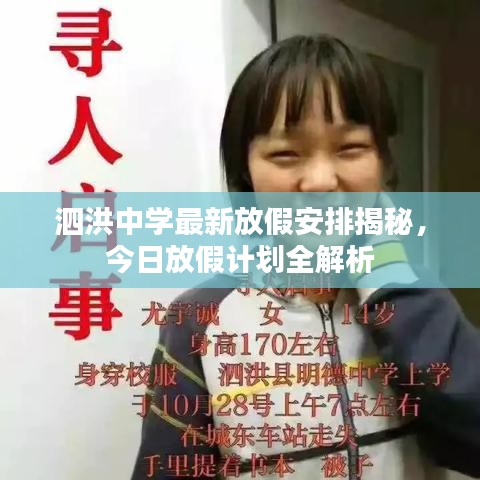 随着季节的转换,时光荏苒,转眼间又到了学生们翘首期盼的假期时刻,作为泗洪地区的重要学府,泗洪中学的放假安排一直备受关注,本文将为大家带来泗洪中学今日放假安排的最新消息,让我们一起了解这个令人激动的消息。