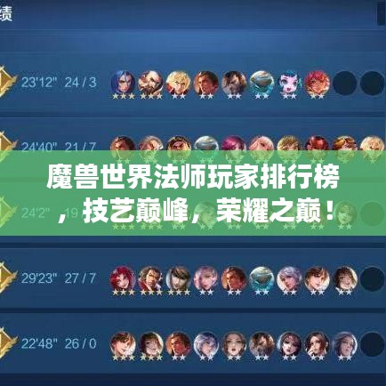 法师玩家在魔兽世界中的技艺与荣耀是众多玩家所瞩目的,通过不断提高自己的操作技巧、战术策略水平以及团队协作能力,法师玩家可以在游戏中取得更好的成绩,为自己和团队赢得荣耀,本文的排名仅供参考,每位法师玩家都有自己的独特之处,值得我们去学习和尊重。