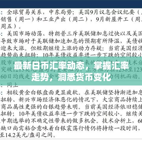 随着全球经济一体化的深入发展,货币汇率的波动成为了金融市场的重要组成部分,日币汇率呈现了一定的波动趋势,根据最新数据,我们可以了解到日币汇率的走势以及影响因素。