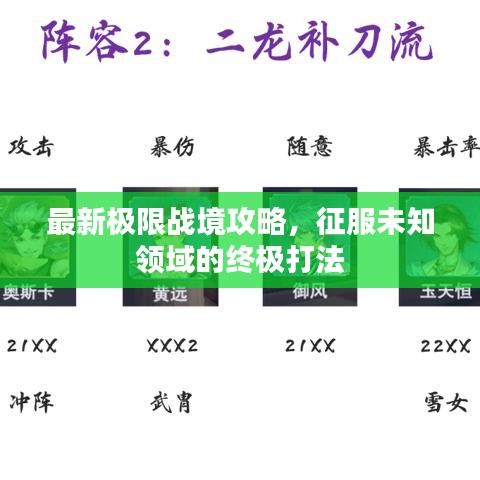 作为一款充满挑战与刺激的游戏,《极限战境》以其独特的玩法和丰富的关卡吸引了众多玩家,本文将为大家带来一篇全面详细的最新极限战境打法攻略,助你轻松征服未知领域,成为真正的战场霸主。