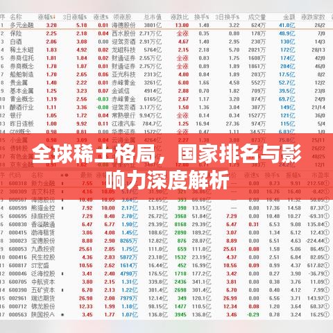 全球各国在稀土领域的排名及其影响力受到多种因素的影响,本文旨在为读者揭示各国在稀土领域的优势和特点,以便更好地了解全球稀土市场的现状和发展趋势。