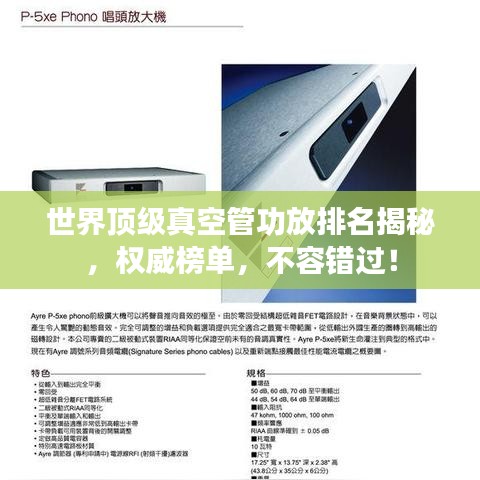 身为音乐爱好者,我们都深知音响设备的重要性,在音响领域,真空管功放以其独特的音色和性能,一直受到众多音乐迷的追捧,本文将为您揭示世界顶级真空管功放的排名,带您领略这些音响巅峰之作的魅力。