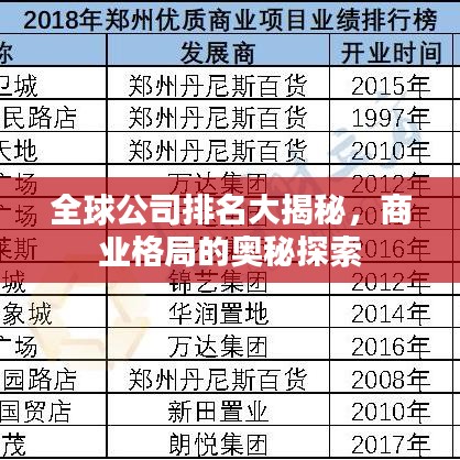 转载请注明来自新乡市正鑫化工有限公司,本文标题:《全球公司排名大揭秘,商业格局的奥秘探索》