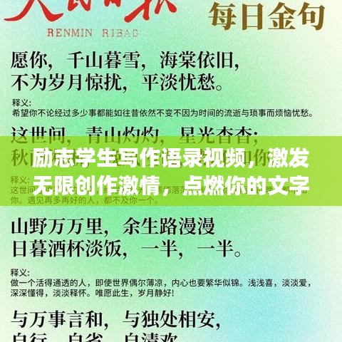 在这个充满活力和创造力的时代,学生们不仅需要书本知识的滋养,更需要一种精神的鼓舞和激励,我们为大家带来一系列励志学生写作语录视频,希望能点燃你的创作激情,激发你内心深处的力量。