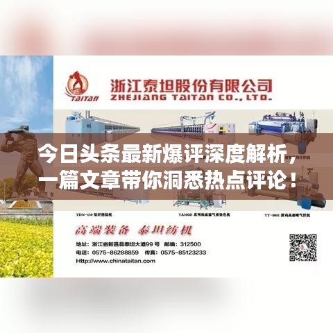 “今日头条最新爆评”已经成为社交媒体上的热门词汇,这些爆评往往与最新的新闻事件、热门话题、明星八卦等紧密相关,它们反映了公众对某些事件或话题的强烈关注和情感倾向,是舆论场中的一股不可忽视的力量。