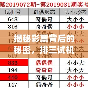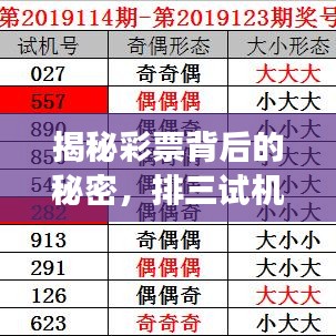 作为博客站长,今天我将和大家探讨一个热门话题:“排三试机号百度一下”,在这个充满神秘和期待的彩票世界里,我们将一起探索试机号的含义、来源以及它们在彩票行业中的影响,让我们揭开这个令人着迷的谜团,深入了解彩票背后的故事。