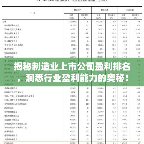 随着全球经济的蓬勃发展,制造业上市公司的利润水平一直是投资者关注的焦点,本文将围绕“制造业上市公司利润排名”这一主题,为您揭示行业盈利能力的秘密。