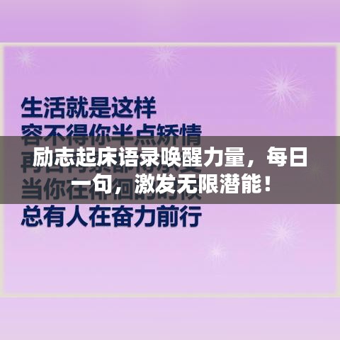 作为博客站长,深知大家对于励志内容的热爱,今天为大家带来一篇关于“励志起床语录”的文章,在这个快节奏的时代,我们时常需要一些鼓舞人心的语句来唤醒沉睡的力量,激发斗志,下面就让我们一起看看这些励志起床语录,为新的一天注入活力吧!