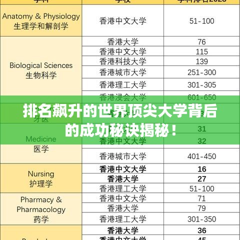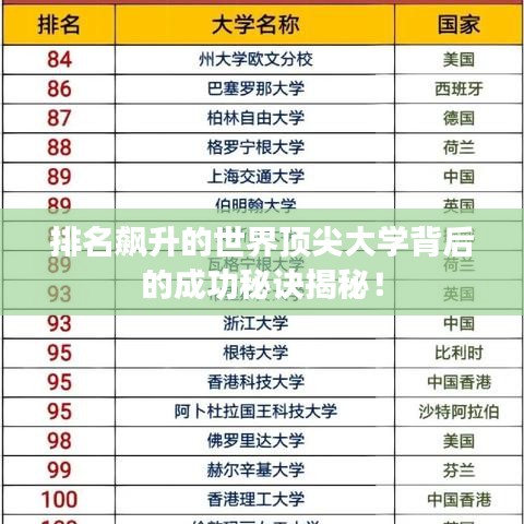 随着全球化和信息化的发展,教育领域的竞争也日益激烈,世界大学排名上升成为了许多高校追求的目标,这不仅代表了学校的学术实力,也反映了其在全球舞台上的影响力,本文将探讨排名上升的世界大学,揭示其成功的秘密。
