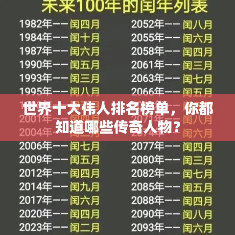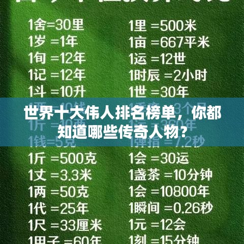 世界之大,能人辈出,有些人的影响力早已超越国界,成为世界的瑰宝,今天我们将为您揭晓世界伟人排名前十名,这些伟人以其卓越的成就和深远的影响永载史册。
