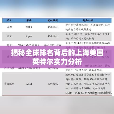 在全球科技产业的激烈竞争中,英特尔作为全球知名的半导体技术巨头,其地位无可替代,而谈及英特尔的全球市场排名,我们不得不关注其在上海以及美国的业务布局和发展态势,本文将围绕上海美国英特尔世界排名展开分析,探讨其在全球半导体行业中的地位及未来发展前景。