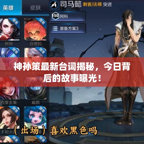 经过最新更新,神孙策的台词更加丰富多样,以下是一些今日最新的神孙策台词: