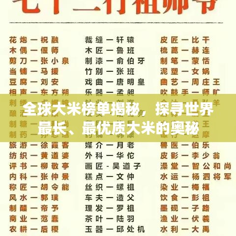 转载请注明来自新乡市正鑫化工有限公司,本文标题:《全球大米榜单揭秘,探寻世界最长、最优质大米的奥秘》