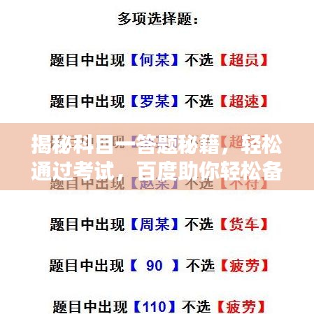 随着驾驶考试的日益普及,科目一作为考试的入门科目,其重要性不言而喻,为了帮助广大考生轻松应对科目一考试,本文将结合“百度一下”搜索结果,为你揭秘科目一答题技巧,助你顺利通过考试。