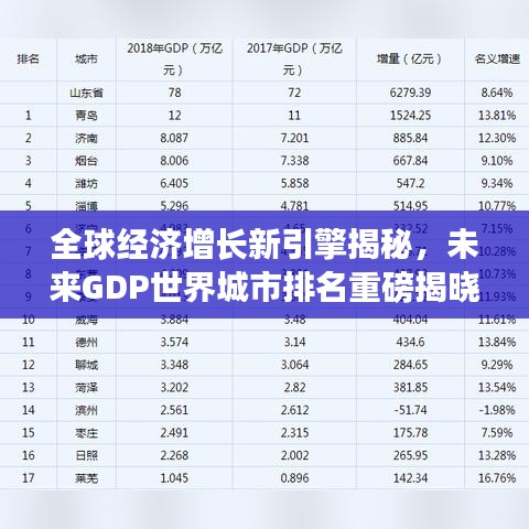 随着全球经济格局的不断演变,各大城市的GDP(国内生产总值)竞争愈发激烈,本文将围绕“未来GDP世界城市排名”这一主题,探讨全球各大城市的经济增长潜力及发展趋势。