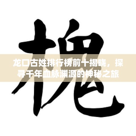 身为一个博客站长,对于本地的历史与文化总是充满好奇与探索之心,我将带大家走进龙口的古老历史,探寻那些隐藏在岁月深处的姓氏排名前十名,这些姓氏不仅是龙口人民的骄傲,更是中华文化的重要组成部分。