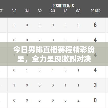 今天的男排直播赛事将为观众们带来一场场精彩纷呈的体育盛宴,我们相信,这场赛事将为大家带来无与伦比的观赛体验,让我们一起锁定今天的比赛,共同见证这场体育盛宴的辉煌时刻,无论您身在何处,只要通过我们的直播平台,就能实时观看比赛,感受排球的魅力,让我们共同期待这场精彩绝伦的男排直播赛事吧!
