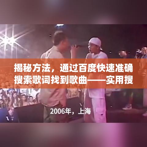 作为博客站长,我深知对于音乐爱好者而言,寻找心仪歌曲的过程中,找到准确、高效的搜歌方法至关重要,我将为大家介绍一种非常实用的方法——“百度一下歌词找歌曲”,通过这一技巧,你可以轻松找到你喜爱的歌曲,请跟随我的博客,一起探索这个神秘而实用的搜歌攻略吧!